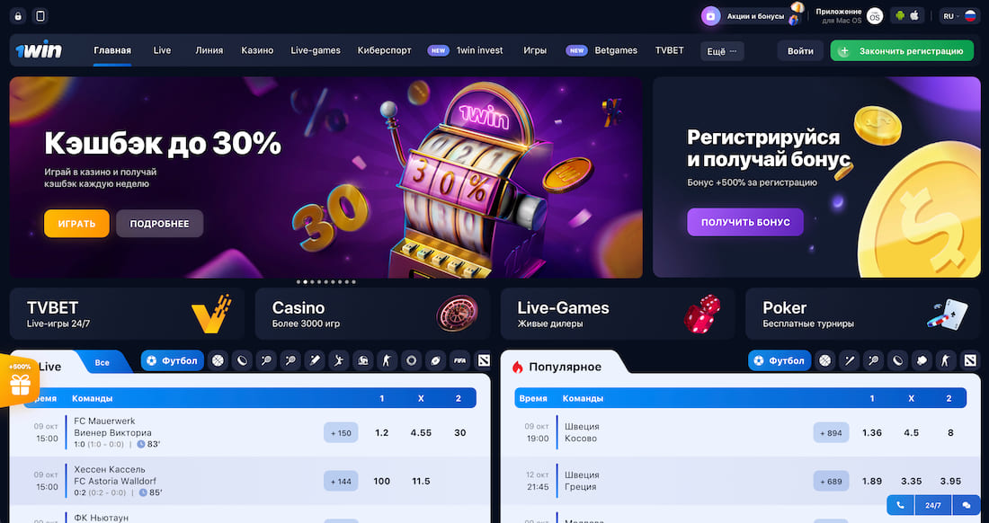 Чтобы начать играть, достаточно войти в существующий аккаунт. Для стабильной работы софта важно регулярно обновлять его до актуальной версии. Уведомления о доступных обновлениях приходят как через само приложение, так и на официальном сайте 1 Win после авторизации. Посетители смогут играть в игровые автоматы, делать ставки в pre-match и live.