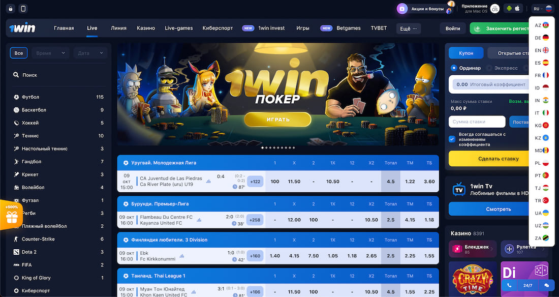 Официальный сайт 1 Win работает на всех устройствах, обеспечивая удобство для гостей. На главной странице 1Вин отображаются данные о джекпоте, смена языка интерфейса и ссылки для инсталляции ПО. Также предлагается скачать приложение на смартфоны. Внизу сайта размещены правила и условия бонусов, информация о владельце ресурса и условия партнерки.